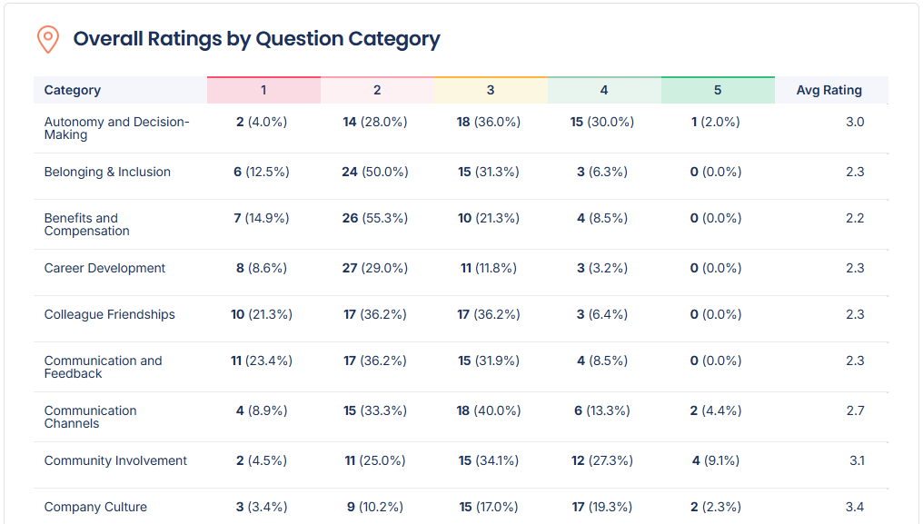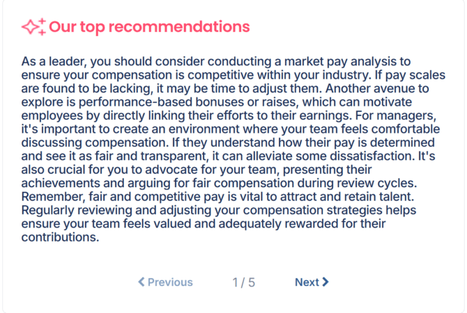 All of our pre-built survey questions will unlock AI-powered recommendations on how to improve your lowest rated survey questions. Helping you go from survey to action, quicker than ever before!